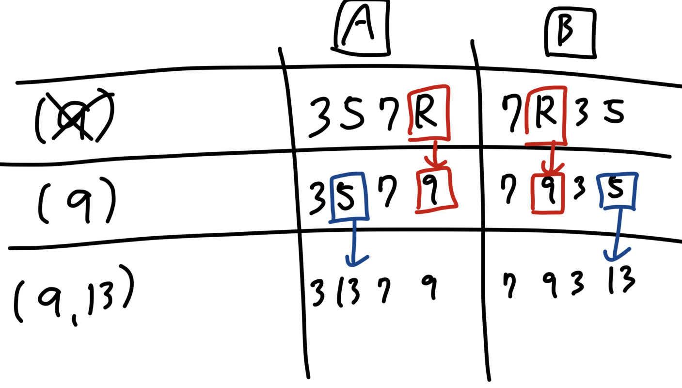 9と13 ・・3 13 7 9(Aフォーム) 7 9 3 13(Bフォーム)